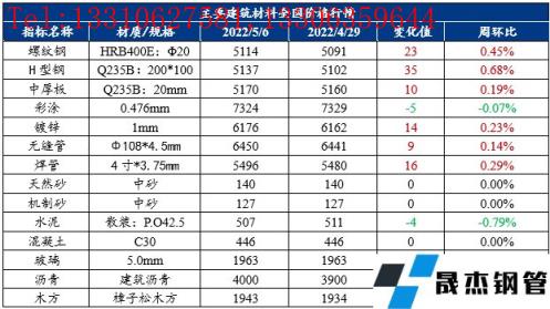 免責聲明:本網站(山東聊城草莓视频色板下载污無縫鋼管廠www.jhysds.com)刊載的“建築原材料周報(4.29-5.6)”等均源於網絡,版權歸原作者所有,且僅代表原作者觀點,本文所載信息僅供參考。轉載僅為學習與交流之目的,如無意中侵犯您的合法權益,請及時聯係刪除。本網站刊登此篇文章並不意味著本站讚同其觀點或證實其內容的真實性,草莓视频色板下载污不對其科學性、嚴肅性等作任何形式的保證。如果侵犯了您的版權,請盡快聯係草莓视频色板下载污予以撤銷,謝謝合作!